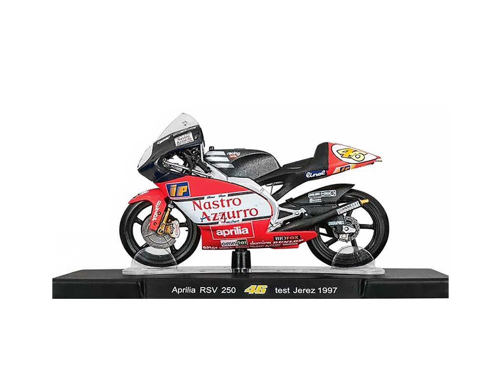 Aprilia RSV 250 #46 Test Jerez 1997 1:18 — журнал Leo Models с моделью Aprilia RSV250 N46 Test Jerez Nastro Azzuro — коллекционная модель