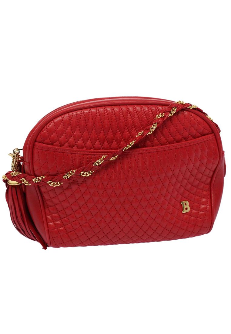 BALLY 2FC30AC7F161CDGS Bally Quilted Chain Shoulder Bag Leather Red Auth Am5028