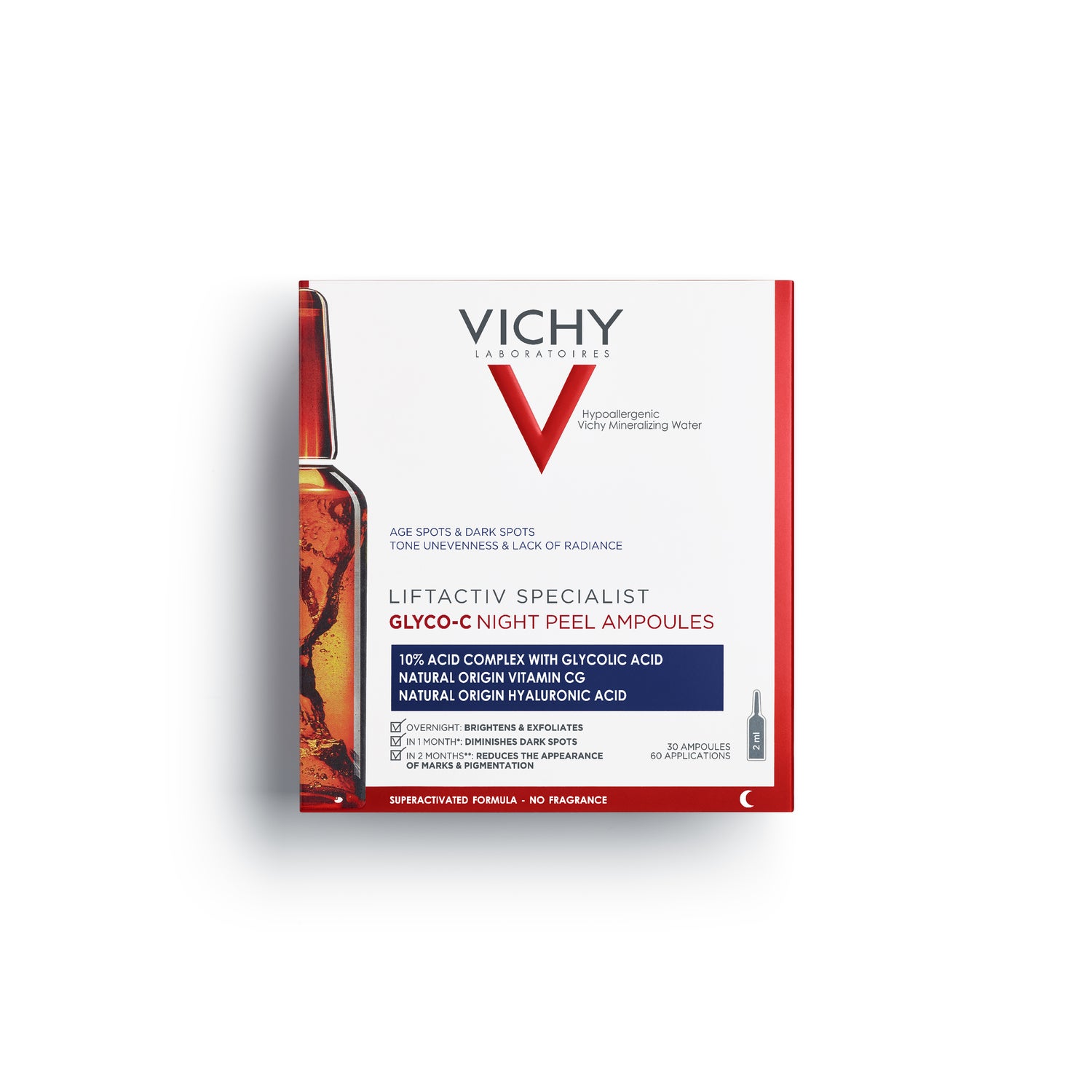 Ампулы с эффектом пилинга на ночь. Его формула, разработанная для того, чтобы помочь исправить, улучшить и предотвратить признаки старения кожи, такие как пятна, неровный тон и недостаток сияния, будет уточнена и уменьшена благодаря высококачественным ингредиентам, которые действуют на кожу в течение всей ночи и которые Постепенно улучшайте внешний вид кожи, делая ее более молодой, яркой и гладкой.