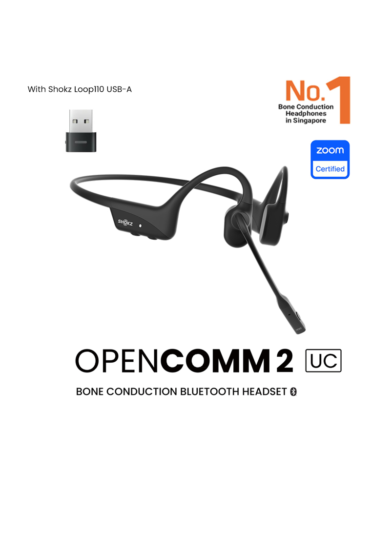 Материал или состав: Что в коробке? — Стерео Bluetooth-гарнитура OpenComm2 UC с костной проводимостью — Беспроводной адаптер Shokz Loop 110 USB-A — Зарядное устройство с магнитной индукцией — Твердый чехол для переноски